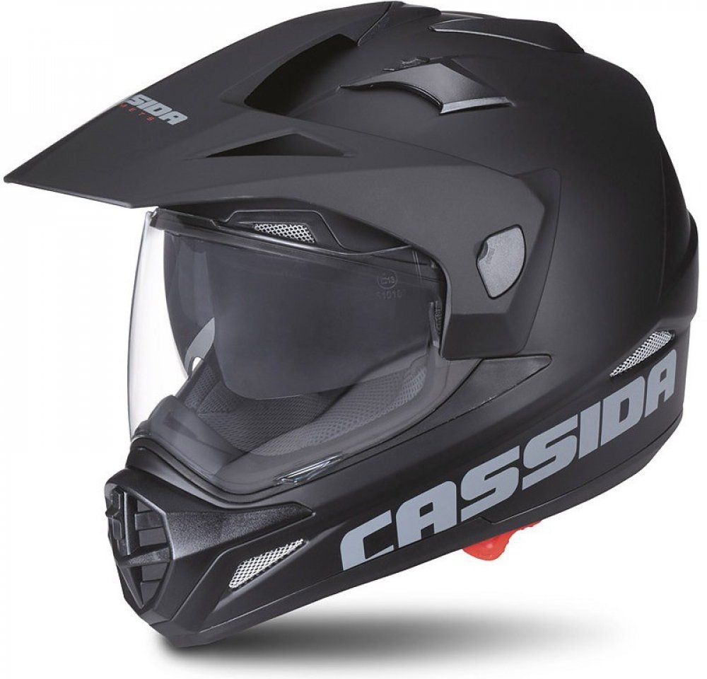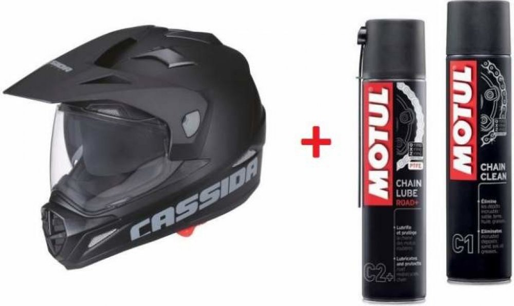 Enduro helma na motorku CASSIDA se hodí k cestování ve městech i mimo něj. K její výrobě posloužil spolehlivý materiál, konkrétně polykarbonát. Ten zajišťuje maximální bezpečí a komfort každému jezdci. Pevné plexi s úpravou antiscratch je chráněno proti drobnému poškození od štěrku z cesty. Kdyby vám při jízdě vadily sluneční paprsky, je možné stáhnout sluneční clonu. Velikost přilby je M. Připnut...