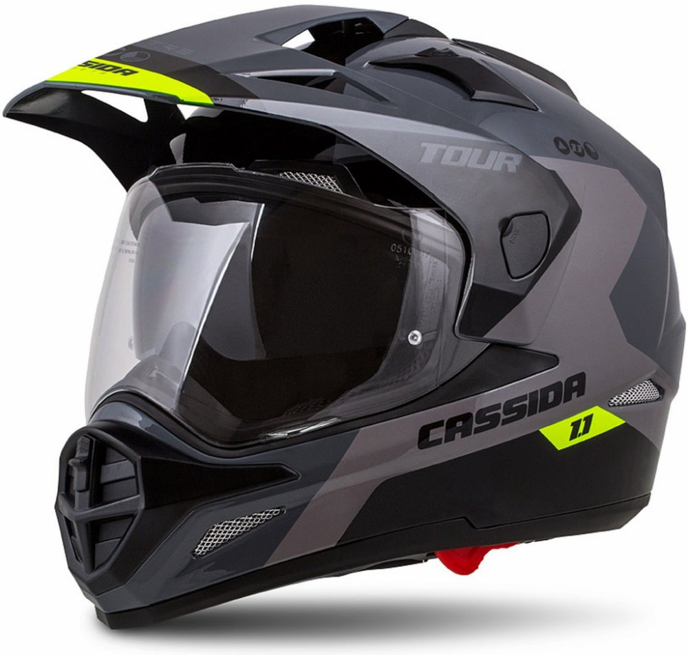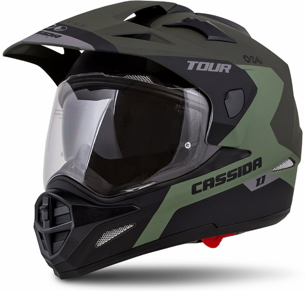 Cassida Tour 1.1 je univerzální přilba s plexi štítem ideální především pro enduro použití, ovšem při jednoduchém odinstalování kšiltu z ní vytvoříte prakticky plnohodnotnou integrální cestovní helmu. A přilbu si dozajista užijí i čtyřkolkáři.