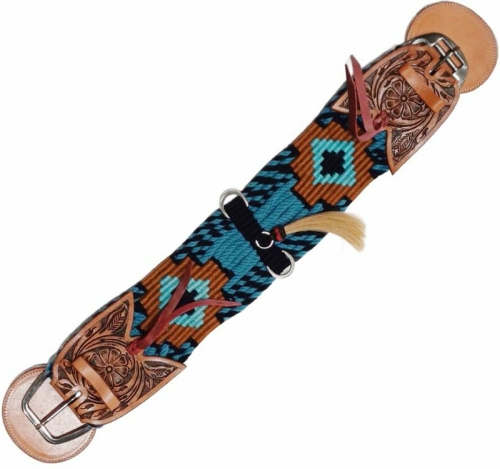 Tradiční westernový podbřišník Cassini Cord v sobě spojuje funkčnost, pohodlí pro koně a výrazný vzhled. Provázková konstrukce zajišťuje výbornou prodyšnost a rovnoměrné rozložení tlaku, díky čemuž je podbřišník vhodný i pro delší vyjížďky nebo intenzivní práci.Kožené koncovky s bohatým květinovým zdobením a barevný tkaný vzor dodávají celku au...