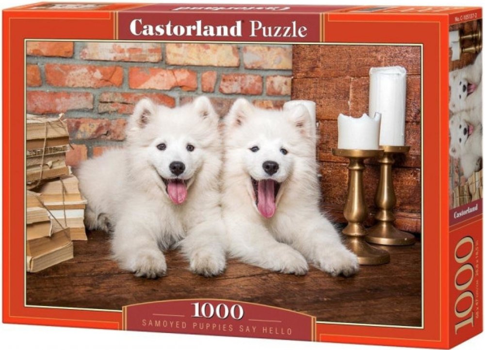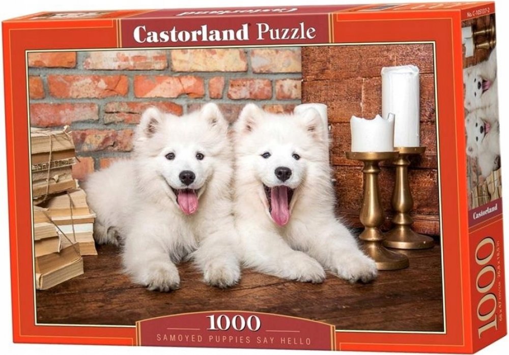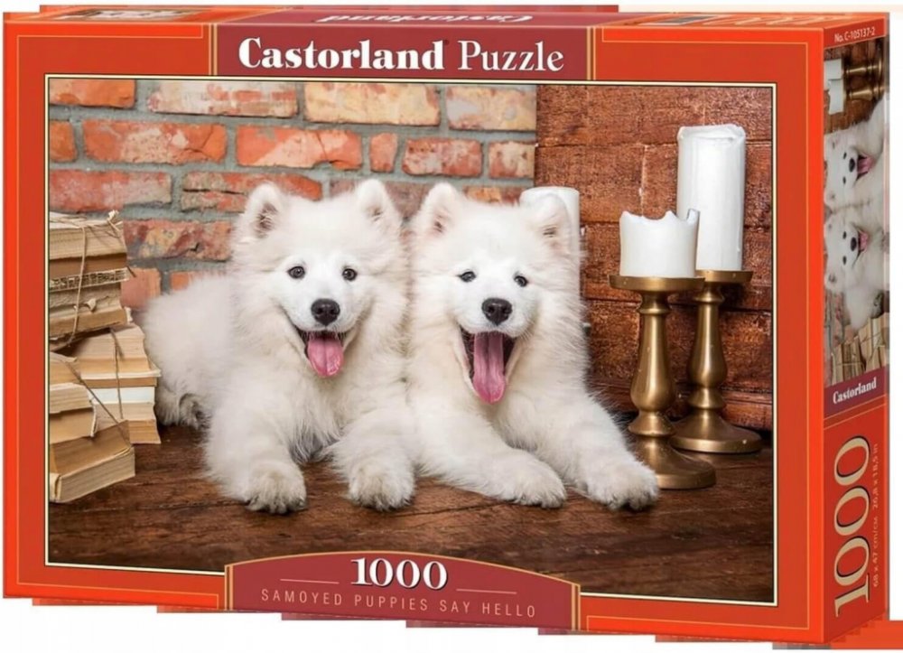 Puzzle 1000 dílků Samoyedští štěňata říkají ahoj C-105137 Nesmírně okouzlující 1000dílné puzzle jsou návrhem pro ty, kteří rádi skládají krásné obrázky.