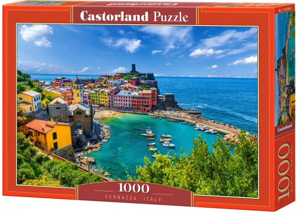 Skládanka puzzle o 1000 kouscích Vernazza Itálie nabízí skvělou zábavu a výzvu pro celou rodinu po dlouhé večery a víkendy. Obrázkové nebo fotografické puzzle po složení poslouží jako originální dekorace na stěnu nebo pod sklo na stole.Skládání puzzle rozvíjí trpělivost, trénuje paměť a koncentraci.Ideální pro dospělé i děti.