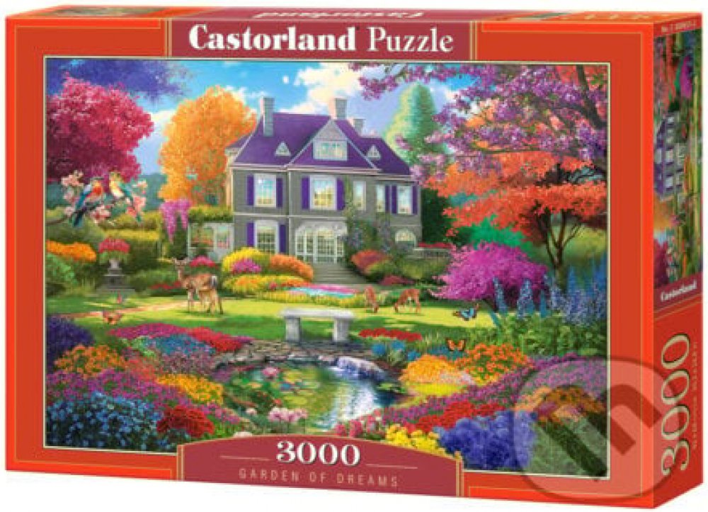 Puzzle 3000 dílků Castorland Zahrada snů je baleno v krabičce. Puzzle Castorland zaručuje vysoké estetické a kvalitní přednosti. Skládáním puzzle se trénuje trpělivost, přemýšlení, paměť a je zárukou radosti při zdárném složení. Puzzle je možné složit, znovu rozebrat a později si to zopakovat nebo obrázek třeba slepit a použít jako dekoraci na stěnu. Specifikace produktu:Vhodné pro děti od 9 let. Velikost krabičky 38,5 x 27,5 x 5 cm. Rozměr složeného puzzle 92 x 68 cm. Počet dílků : 3000 dílků.