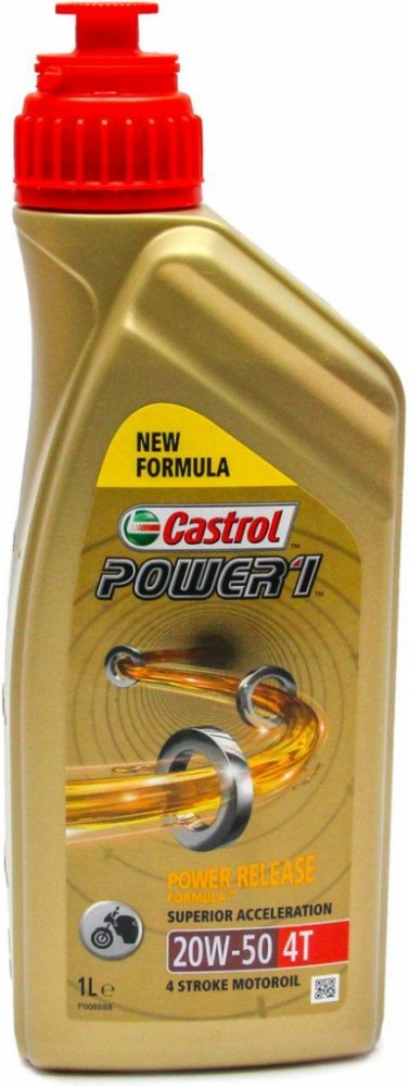 Castrol Power 1 s recepturou Power Release je speciálně vyvinut pro motorkáře, kteří milují vzrušení z jízdy. Tento zdokonalený 4-taktní motorový olej výjimečné kvality zajišťuje rychlé zaolejování s minimálními vnitřními třecími ztrátami motoru. Při testování prokázal zvýšenou akceleraci ihned po přidání plynu a překonal tak ostatní značky. Další předností Castrol Power 1 vyplývající z Trizone Technology je maximální ochrana výkonu. Castrol Power 1 – vyvinut pro výkon.