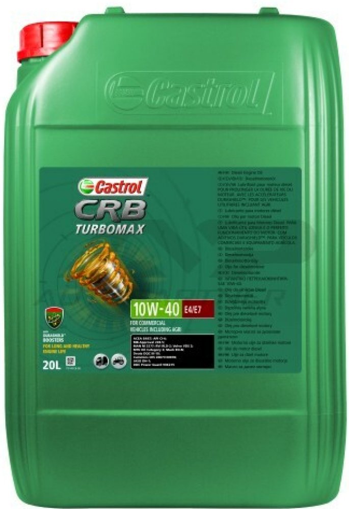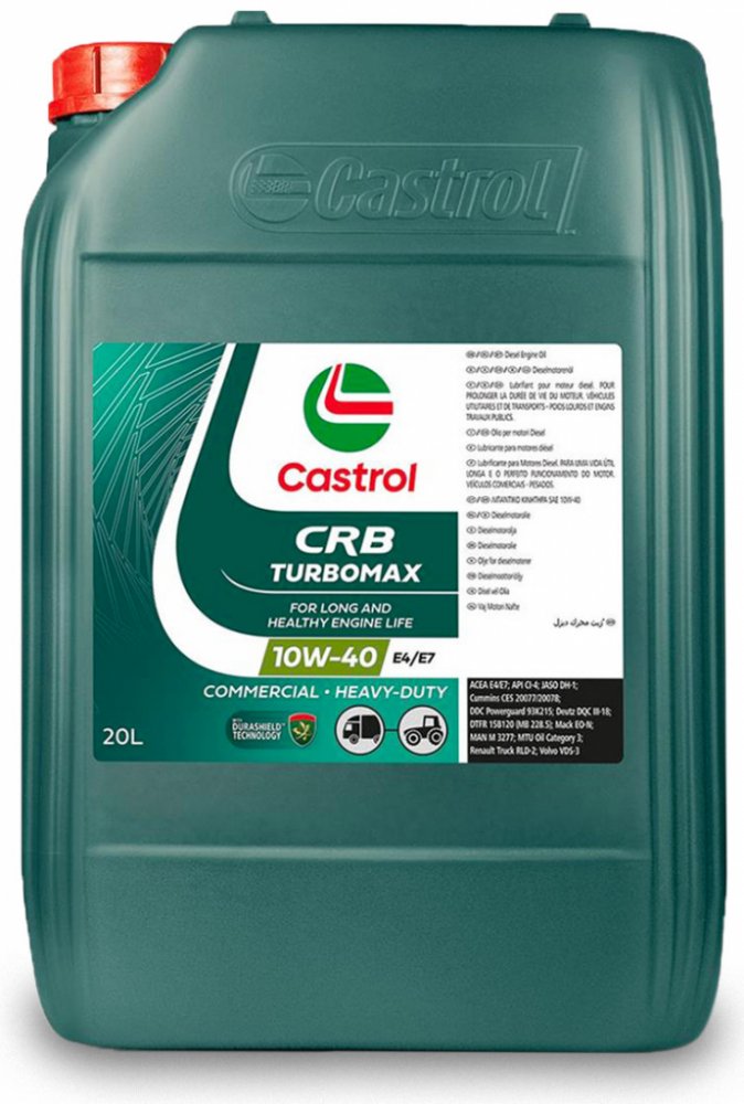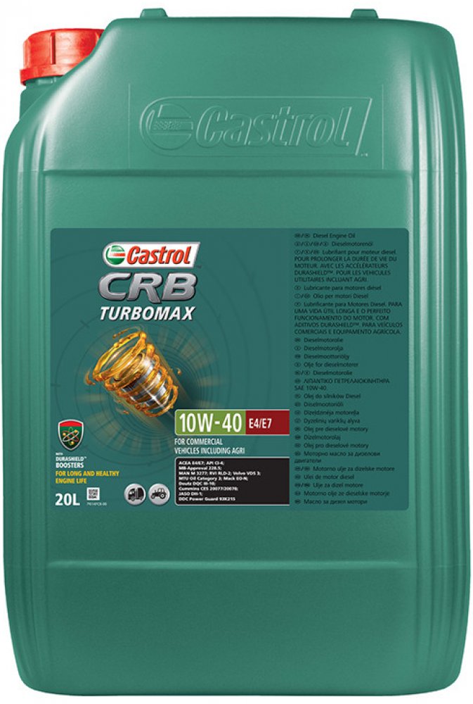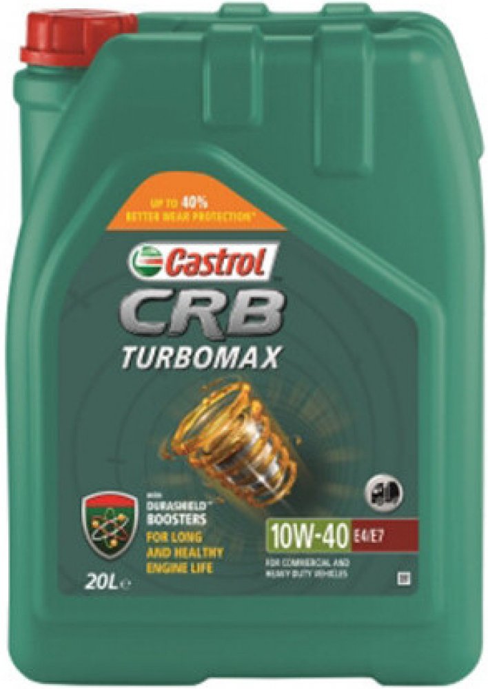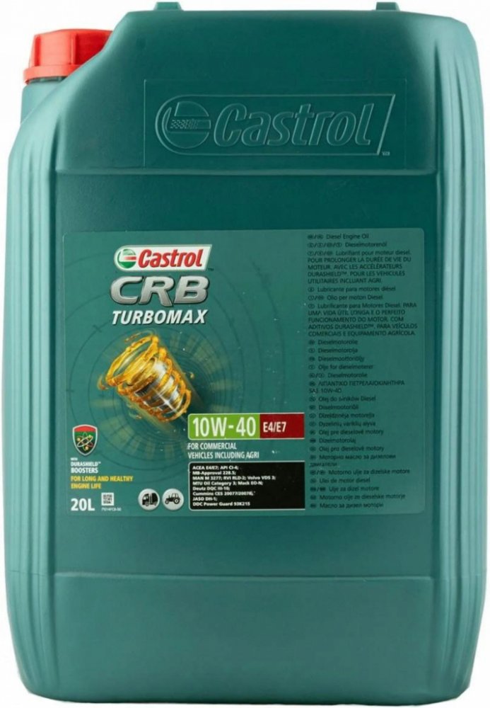 Nový Castrol CRB Turbomax 10W-40 E4/E7 je pokročilý olej pro dieselové motory pracující v náročných podmínkách. Je vhodný pro použití ve špičkových dieselových motorech splňujících požadavky emisních norem Euro I až Euro V. bsahuje speciálně navržené přísady DuraShieldTM, které pomáhají bojovat s hlavními příčinami poškození motoru. Při průmyslových testech zajišťuje olej Castrol CRB Turbomax s př...