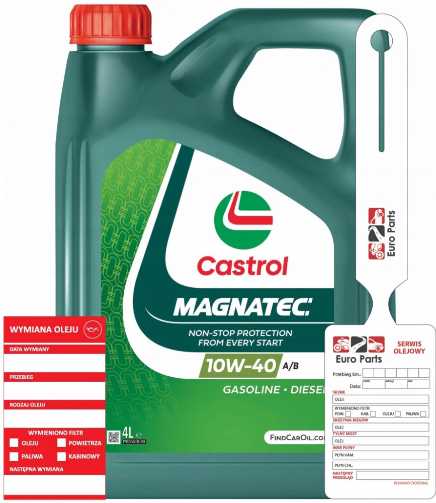 - Aplikace Castrol Magnatec 10W-40 A3/B4 je vhodný pro použití v benzinových a dieselových motorech osobních automobilů, kde výrobce doporučuje olej viskozitní třídy SAE 10W-40 a specifikace ACEA A3/B3, A3/B4, API SL/CF anebo dřívější specifikace.