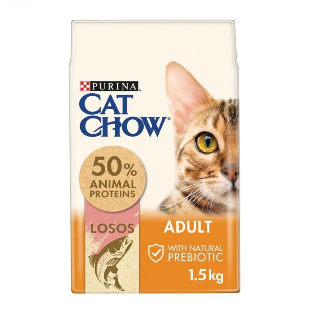 Cat Chow Adult losos & tuňák od Puriny je kompletní a vyvážené krmivo pro celkovou podporu zdraví Vaší kočky. Snadno stravitelné a cenné bílkoviny propůjčují krmivu výjimečnou chuť, které žádná kočka neodolá. Krmivo bylo vyvinuto tak, aby splňovalo výživové a energetické nároky dospělých koček od 1 roku. Omega 3 a 6 mastné kyseliny mohou podporovat zdravou pokožku a zářivou srst.