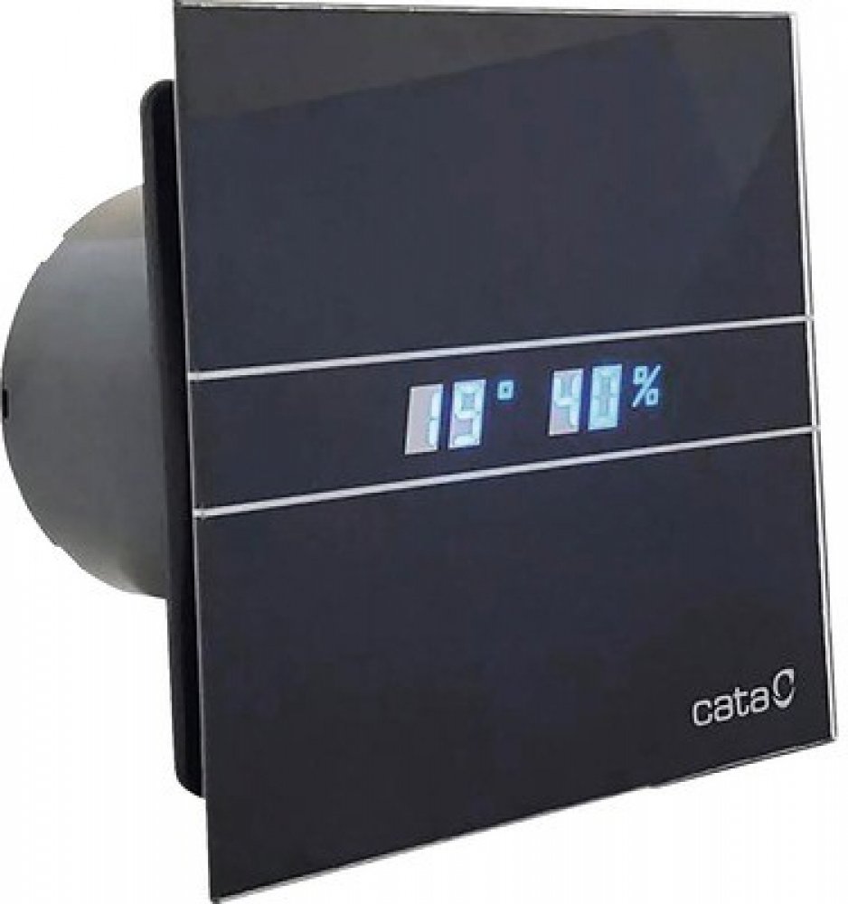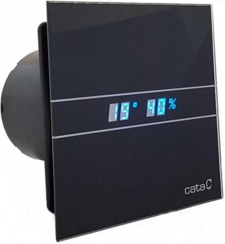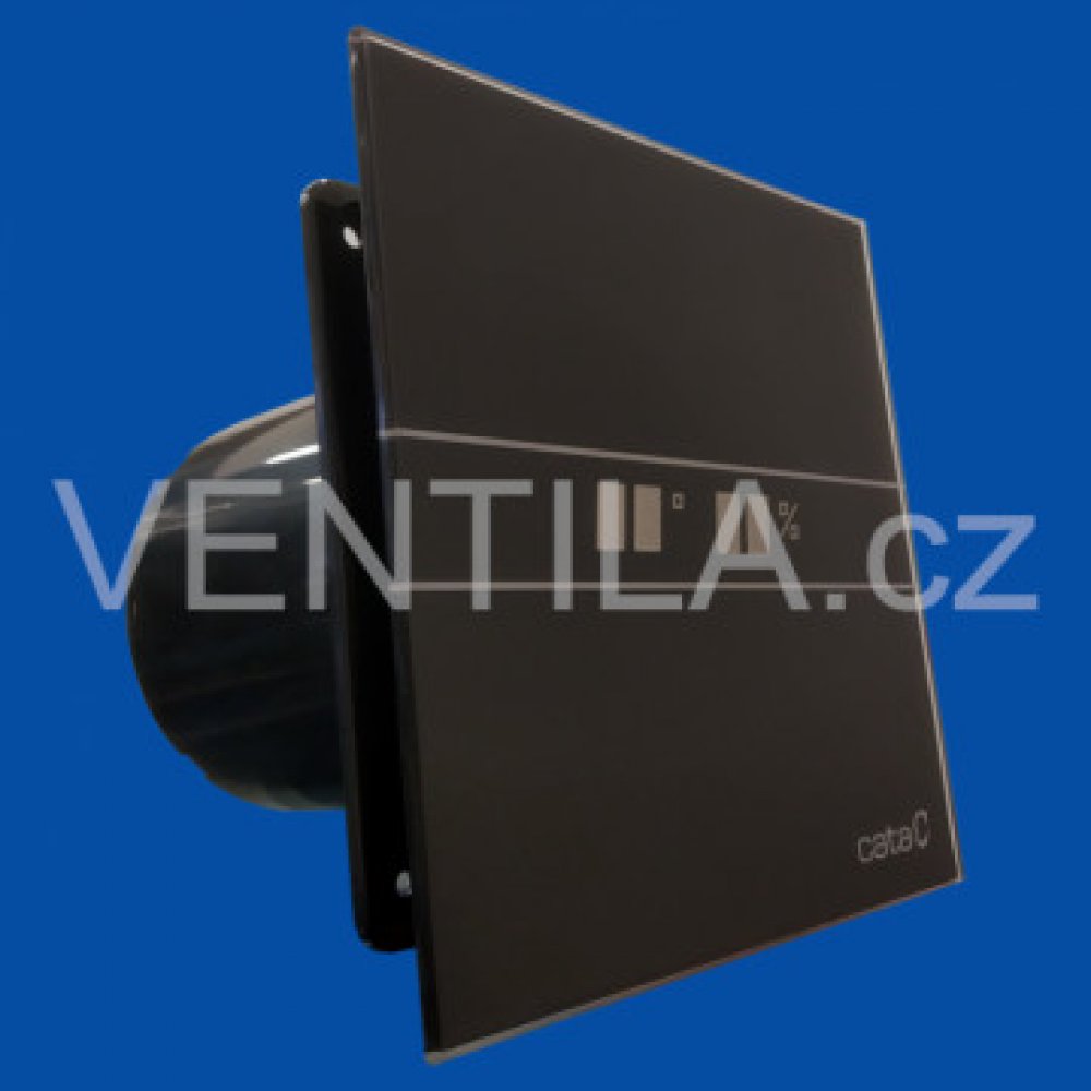 Designový axiální ventilátor s časovým doběhem a čidlem vlhkosti Cata e100 GBTH čelní panel sklo, černý