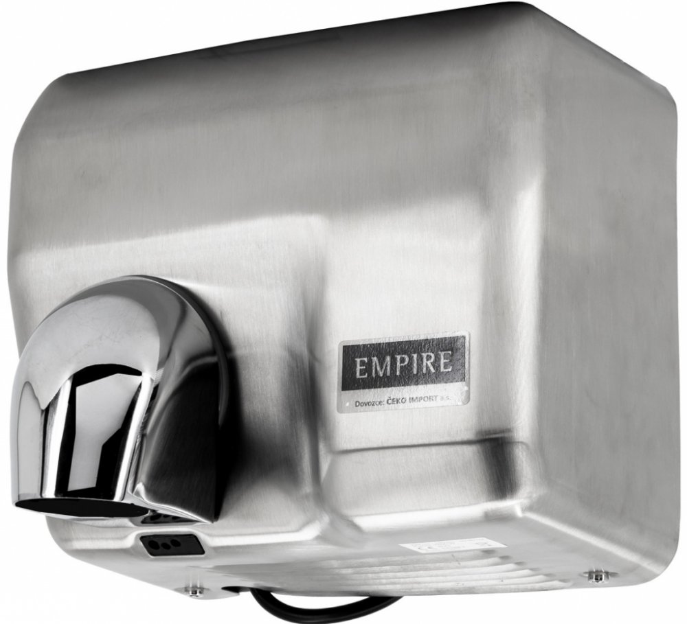 Horkovzdušný osoušeč rukou EMPIRE ARIEL SF 2400 W AUTOMATIC je vybavený infrasnímačem (PIR čidlo), který ventilátor sepne při přiblížení rukou ve vzdálenosti cca 10 – 30 cm od prostoru osoušení. Časový interval sepnutí je poté cca 20 – 25 s. U tohoto typu osoušeče máte možnost nastavení výdechové trysky, která je otočná o 360 stupňů.