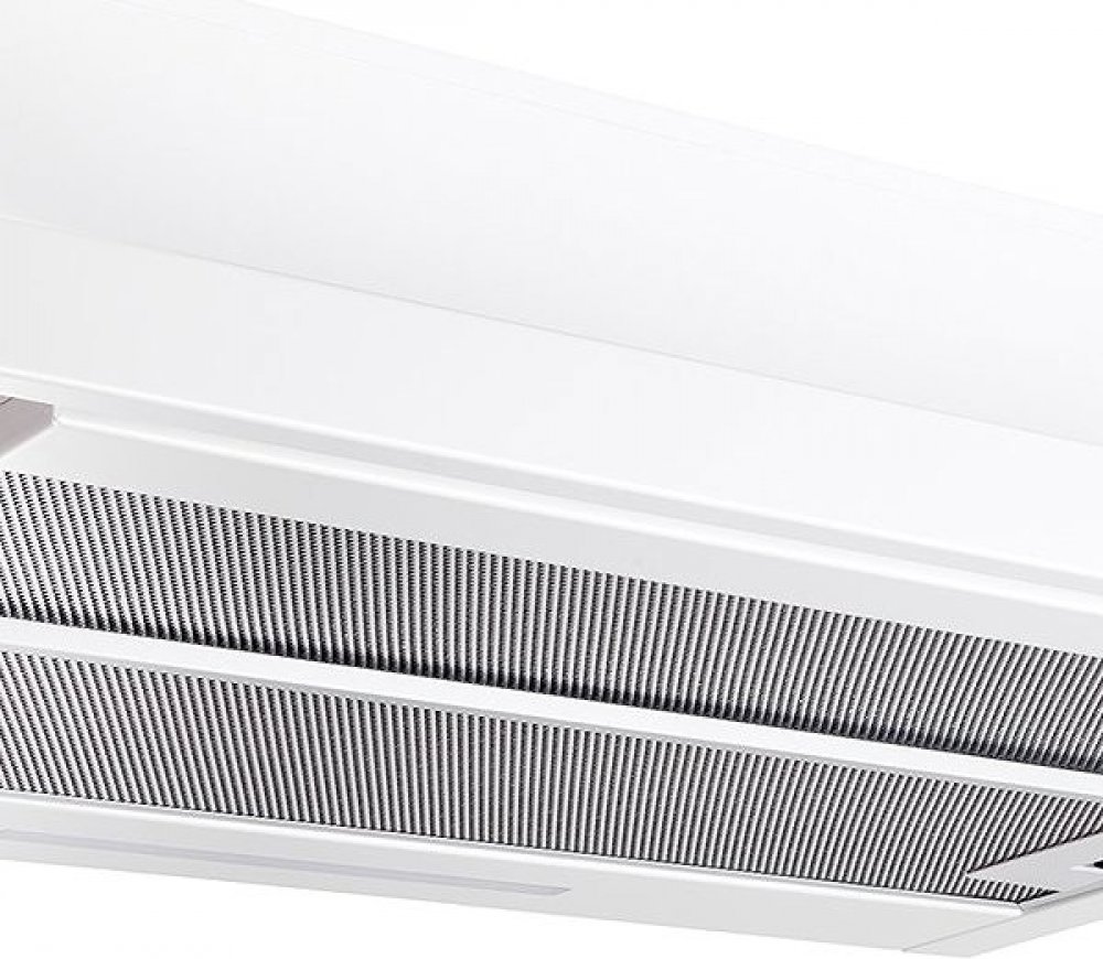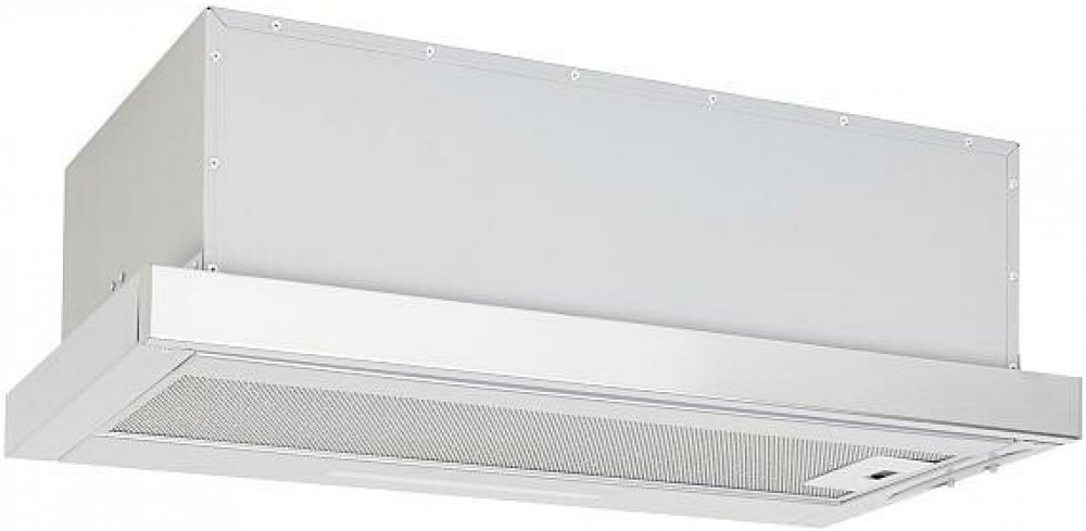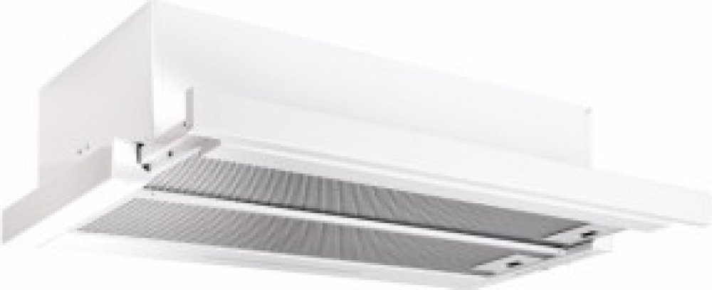 Vestavná digestoř výsuvná, jediná na trhu s odtahem dozadu nebo nahoru (oba 120 mm), šíře 60 cm, bílá, max. výkon 338 m3/h (15 Pa), hlučnost Lw 56 – 71 dB(A), 3 rychlosti, odsávací jednotky mají individuálně vyvažovanou turbínu, motory jsou opatřené vratnými tepelnými pojistkami (při přetížení motoru vypne, po jeho vychladnutí opět sepne), mechanické posuvné ovládání, kovové sendvičové tukové filtry, které lze mýt v myčce, možnost práce v odtahovém i recirkulačním režimu, Výbava: úsporné LED osvětlení 1 × 2,8 W (LED pásek), zdarma zpětná klapka