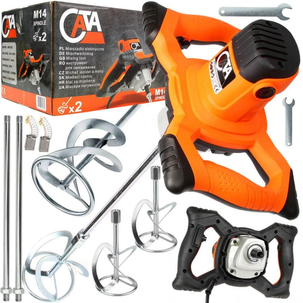 M51303 Balení: Hmotnost: 5.600 Délka: 24.00 Šířka: 34.50 Výška: 21.50 Popis: Míchadlo stavebních směsí 1400 W s regulací otáček CATADíky vysokému výkonu je míchadlo schopno efektivně zpracovat větší objemy směsí, což je ideální pro profesionální i hobby použití na stavbách či při renovacích. V základní výbavě najdete rovnou 2 ks robustních míchacích metlí, které zajišťují efektivní a důkladné promíchání stavebních směsí.Síla a výkon - Silný motor o výkonu 1400 W, který zvládne vše, od jemných barev až po těžké stavební malty, beton nebo lepidla. Kontrola a preciznost - S postupným nastavením rychlosti v šesti stupních od 0 do 850 ot/min je zajištěna plná kontrola nad výkonem míchadla. To umožňuje přesnou práci podle aktuálních požadavků. Pro pomalé míchání jemnějších směsí nebo rychlé a intenzivní míchání náročnějších materiálů poskytuje míchadlo optimální výkon.Ergonomie a pohodlí - Uzamykatelný spínač umožní pracovat bez únavného držení spouště, což zásadně snižuje únavu a umožňuje soustředit se plně na práci. Ergonomicky tvarovaná rukojeť je navržena pro maximální pohodlí a bezpečnost.Odolnost - Velmi kvalitní plastové pouzdro je odolné vůči mechanickému poškození a opotřebení. Kvalita materiálů a konstrukce zaručuje, že se jedná o spolehlivý pracovní nástroj.Důkladné míchání - S míchací metlou v délce 59 cm a průměru 120 mm lze očekávat dokonalé promíchání každé směsi. Ať už se míchají malá množství nebo větší objemy, míchadlo zajistí, že každý materiál bude důkladně a rovnoměrně promíchaný, což zjednodušuje a urychluje práci.Použitístavební práce - ideální pro přípravu malty, omítky nebo betonových směsí přímo na stavběrenovace - pomáhá při míchání lepidel a tmelů při pokládce dlažby nebo obkladůmalířské práce - umožňuje rovnoměrné míchání barev a laků pro dosažení homogenní směsiParametrynapájení 230 V/ 50 Hzpříkon: 1400 W regulace otáček: 0 - 850 ot/minpočet stupňů rychlosti: 6připojovací závit: vnitřní závit M14průměr metly: 120 mmdélka metly: 59 cmdélka přívodního kabelu: 170 cm Obsah baleníelektrické míchadlo míchací metla: 2 ksservisní klíčenáhradní uhlíky: 2 ks