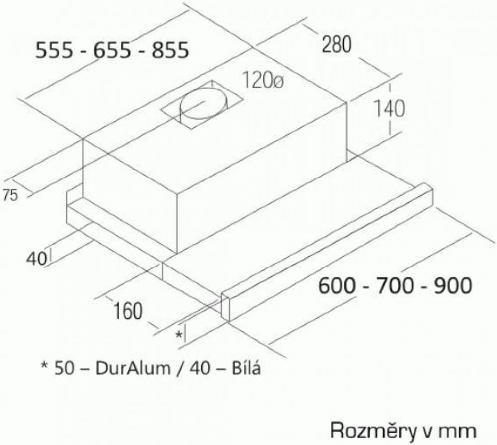 Vestavná výsuvná, 600 mm, nerez lišta s povrchem DurAlum, 1 motor 80 W, 2 rychlosti, 340 m3/h (15 Pa), max. tlak 194 Pa, max. hlučnost Lw 55 dB. Recirkulační režim u vestavných digestoří: Digestoř se osadí uhlíkovým pachovým filtrem. Přefiltrovaný vzduch se z digestoře odvádí obdobně jako u odtahového režimu trubkou, která prochází celou skříňkou. Tato trubka však neústí kolenem do zdi, ale nad sk...