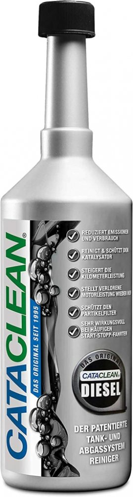 Cataclean Diesel je čistič palivvového a výfukového systému. Cataclean odstraní škodlivé usazeniny uhlíku ve ventilech, vstřikovačích, kyslíkových senzorech, EGR ventilu, filtru pevných částič a katalyzátoru. Cataclean sníží množství pevných částic v DPF, čímž zabrání ucpání. Cataclean může zlepšit spotřebu paliva, snížit emise, obnovit výkon a prodloužit životnost dílů motoru/výfuku.