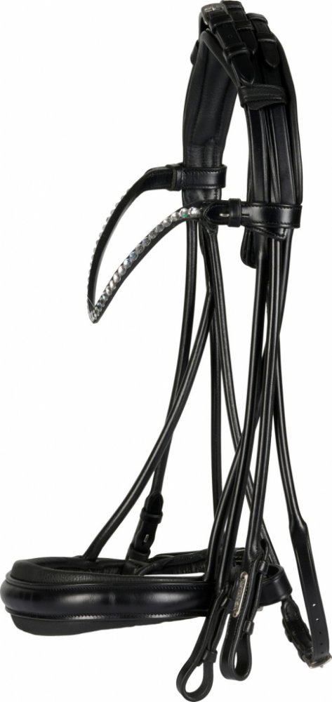 Elegantní kulatě šitá uzda se švédským kombinovaným nánosníkem od značky CATAGO. Vyrobená z té nejkvalitnější italské kůže. Uzda má anatomické měkké polstrování z paměťové pěny v oblasti nánosníku a nátylníku, které zmírňuje tlak na týl a citlivé nervy v oblasti lícních kostí a horní čelisti. Čelenka je zakřivená a zdobená kamínky, lze ji v případě potřeby vyměnit. Kování je z nerezové oceli. Dodá...