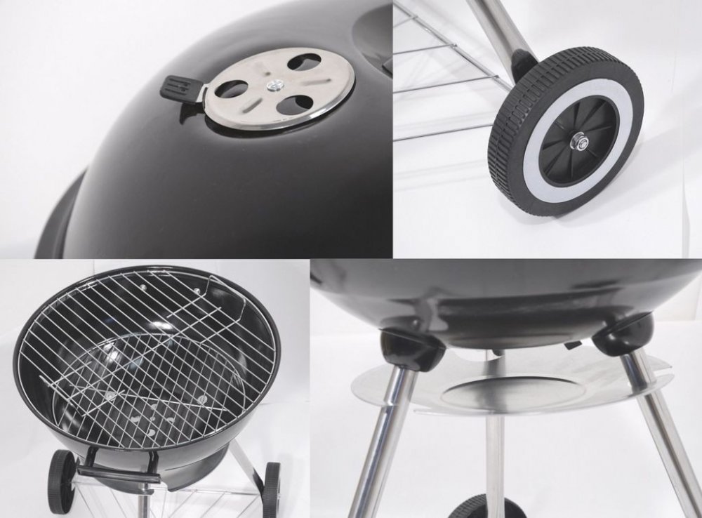 Konstrukce je vyrobena z kvalitního ocelového plechu se smaltovanou povrchovou úpravou. Madla jsou z odolného plastu a mají dostatečný prostor pro úchop. Mobilitu zajištují tři kovové nohy, doplněné o zpevňující rám ve spodní časti. Navíc je gril vybaven kolečky z plastu, která zaručují dostatečnou pohyblivost.