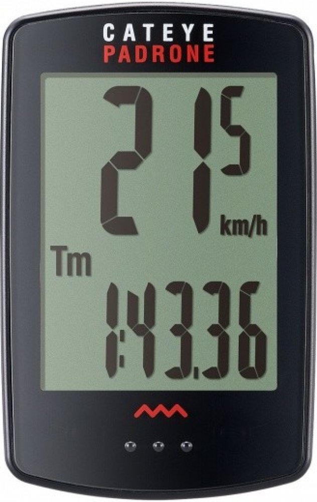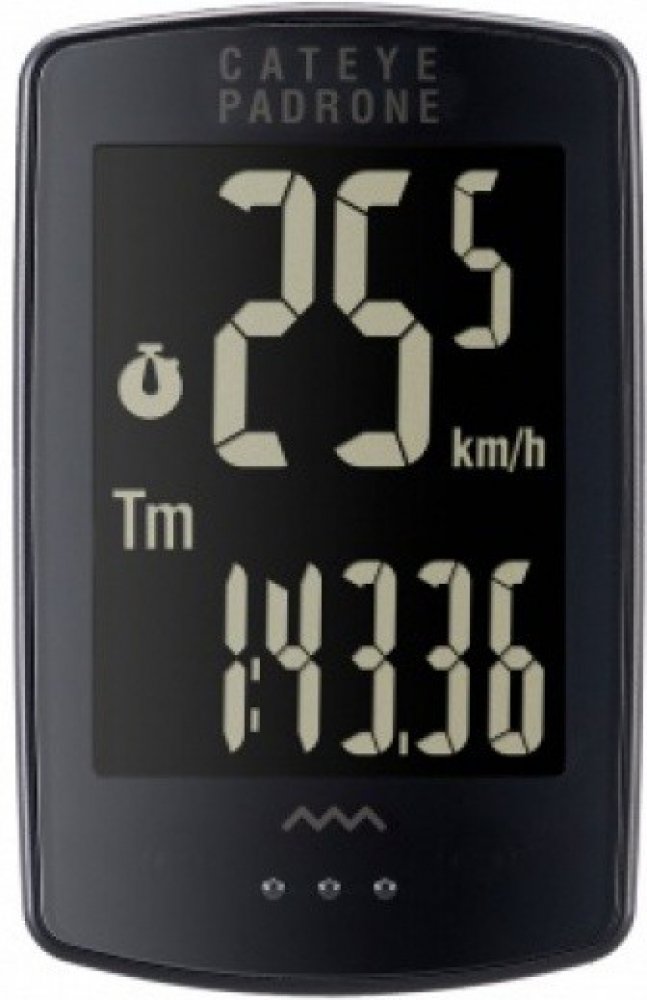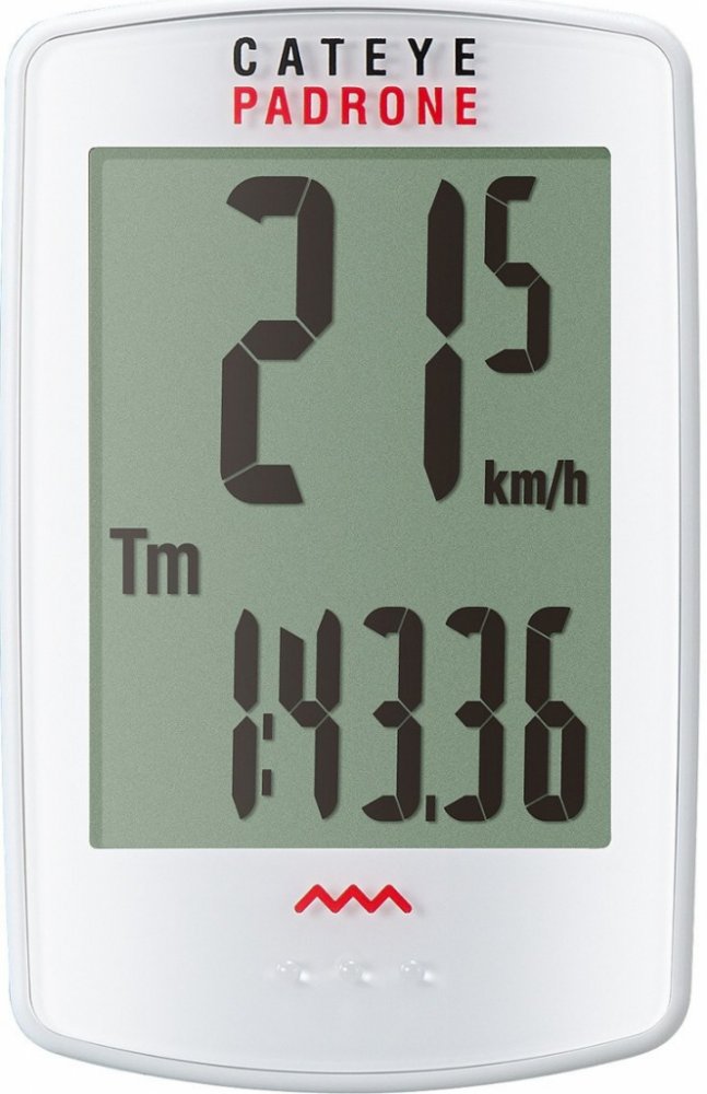 BEZDRÁTOVÝ extra velký BEZTLAČÍTKOVÝ 7-funkční tachometr CATEYE PADRONE Wireless PA100W - obrovský displej a velké číslice pro dobrou čitelnost bez brýlí - bezdrátový přenos až na vzdálenost 60cm - beztlačítkový tenký cyklopočítač CATEYE s velkým displejem a číslicemi Většinu jeho horní plochy díky absenci ovládacích tlačítek zabírá dvouřádkový displey. Ovládání cyklocomputeru je velmi jednoduché, provádí se stiskem - ClickTec™ Uchycení otočným držákem "Flex-Tight" s universální objímkou umožňující připevnění na všechny průměry řidítek nebo představců, k montáži držáku a snímače není potřeba žádné nářadí. Díky automatické funkci AT - "automatické měření" nemusíte cyklopočítač při rozjezdu zapínat, tuto funkci můžete vypnout a používat ruční nastavení (START/STOP) FUNKCE : denní kilometry, celková vzdálenost, okamžitá rychlost, průměrná a maximální rychlost, stopky, hodiny. Automatická funkce START / STOP. indikátor stavu baterie