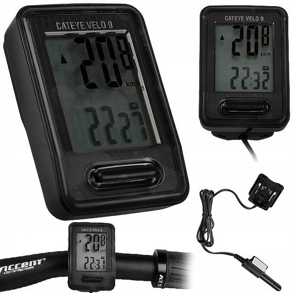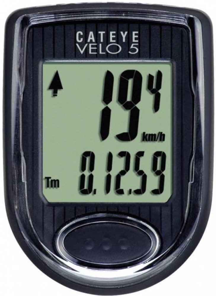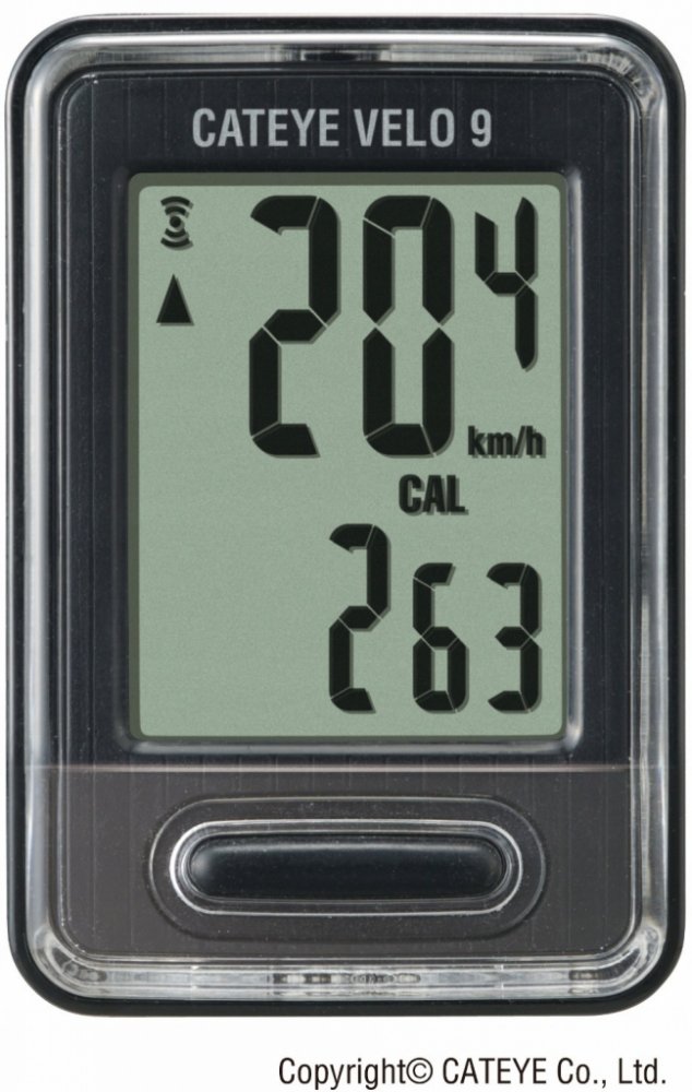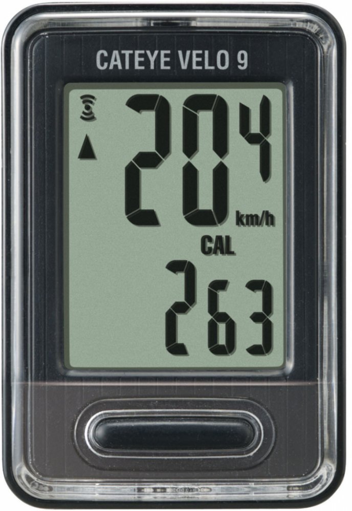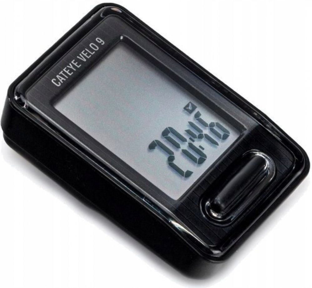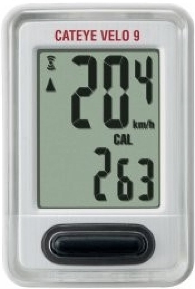 Cyklopočítač CATEYE, 9 funkcí: denní / celková vzdálenost, okamžitá / průměrná / max. rychlost, čas jízdy, hodiny, spotřeba kalorií, nevyprodukované CO2.