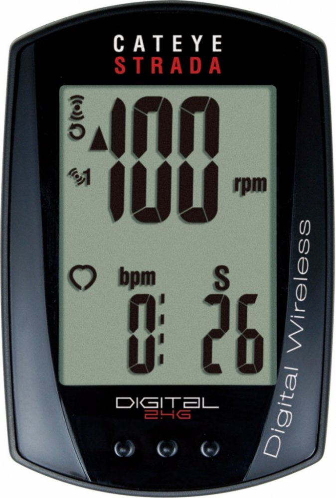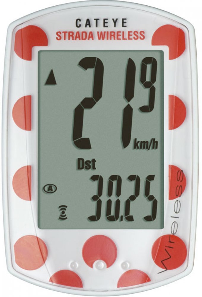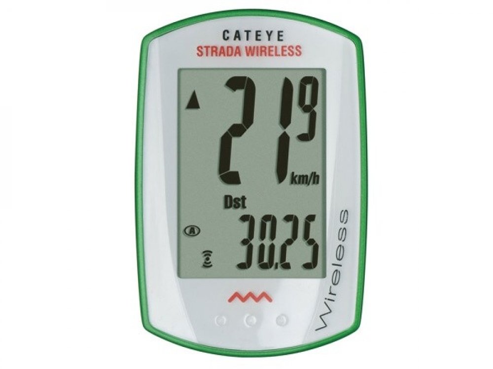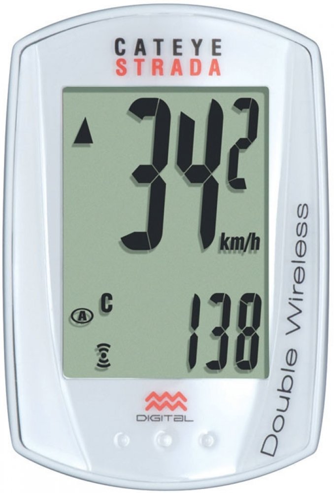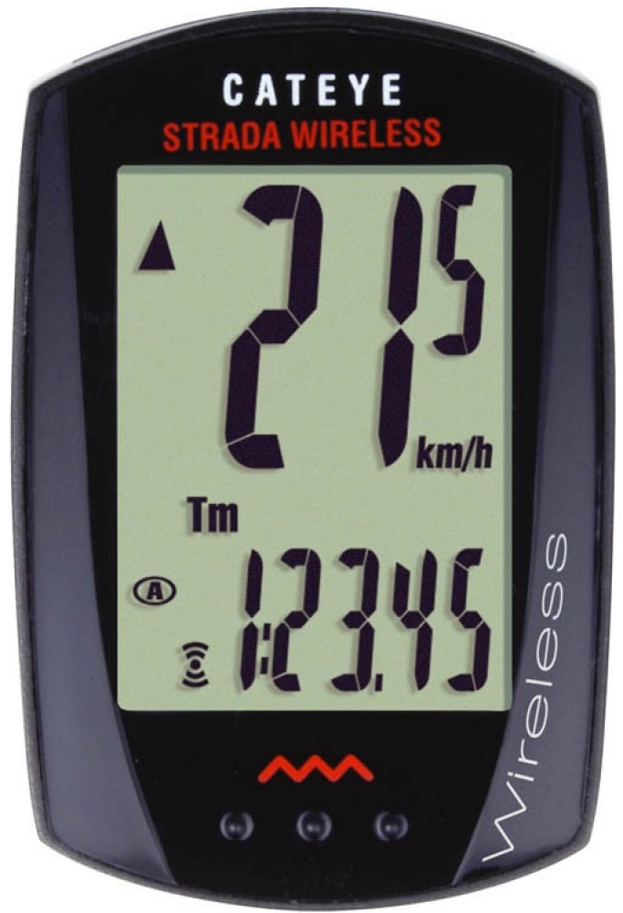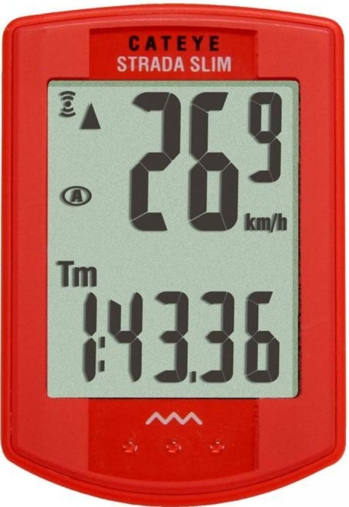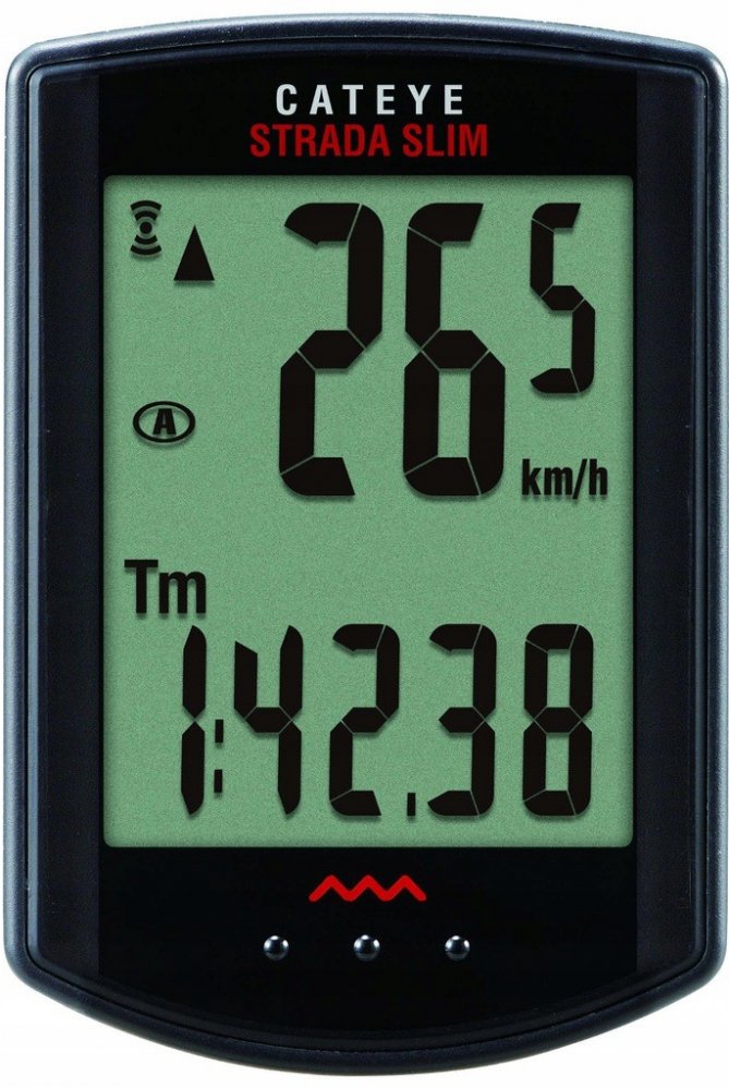 Tenký bezdrátový/beztlačítkový cyklopočítač CATEYE malých rozměrů s velkým displejem a číslicemi. Standardní snímač rychlosti SPD-01. 8 funkcí: denní (1 a 2) / celková vzdálenost, okamžitá / průměrná / max. rychlost, čas jízdy, hodiny, funkce Pacer - indikátor (šipky) poměřující okamžitou a průměrnou rychlost, nastavitelné dva průměry kola a celková vzdálenost, aut. funkce START / STOP, bezdrátový...