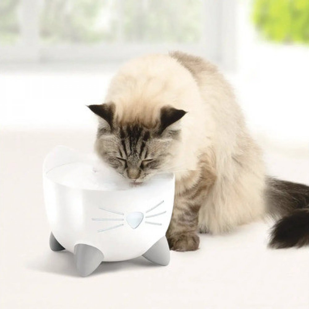 Fontána pro kočky je vybavena energeticky úsporným a velmi tichým čerpadlem, které se automaticky vypne, když je hladina vody příliš nízká. Filtr s trojím účinkem zajišťuje důkladně vyčištěnou vodu.