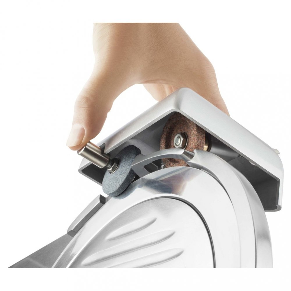 Ideální volba pro náročné uživatele, kteří potřebují precizně krájet různé druhy potravin. Díky profesionální konstrukci a výkonnému motoru zvládne jak přípravu domácí svačiny, tak i catering pro větší počet lidí. Integrované brusné kameny zajišťují vždy ostré kotouče.