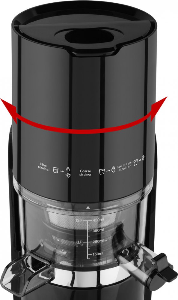Nízké otáčky bez zbytečného zahřívání a silný ocelový šnek jsou zárukou maximální výtěžnosti šťávy i obsahu živin.