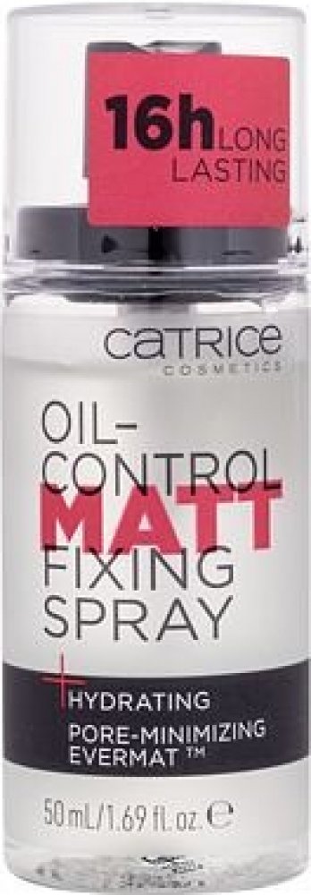 Catrice Oil-Control Matt Fixing Spray 50 ml minimalizuje póry a zmatňuje pleť po dobu až 16 hodin aniž by pokožku vysušoval. Snižuje produkci kožního mazu a tím zabraňuje lesklému efektu v obličeji. Lze použít před samotnou aplikací podkladu a make-upu nebo na osvěžení a zmatnění pleti kdykoli během dne.