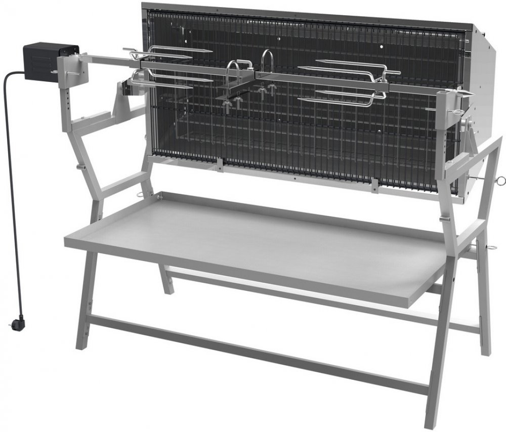 Gril je doplněn výkoným motorem s napájením na 230V pro otáčení pokrmů při rychlosti 3ot./min. Na vidlice - motor je možné naložit až 30 kg pokrmů.