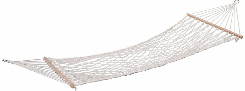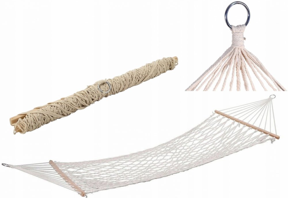 Síť je na obou koncích osazena dřevěnými, rozpěrnými tyčemi, které zajišťují vynikající stabilitu a s ní spojenou vysokou míru pohodlí. Tyčemi jsou protaženy 5 mm provazy z měkkého a pružného vlákna a konce provazů jsou zapleteny do ocelových kroužků určených k zavěšení.