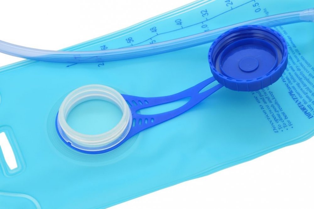 Pitný vak Cattara naplníte po odšroubování víka. Na stupnici vidíte, kolik vody se v něm nachází. Rozměry příslušenství se hodí pro použití v běžných batozích s možností upnutí hydratačních vaků.