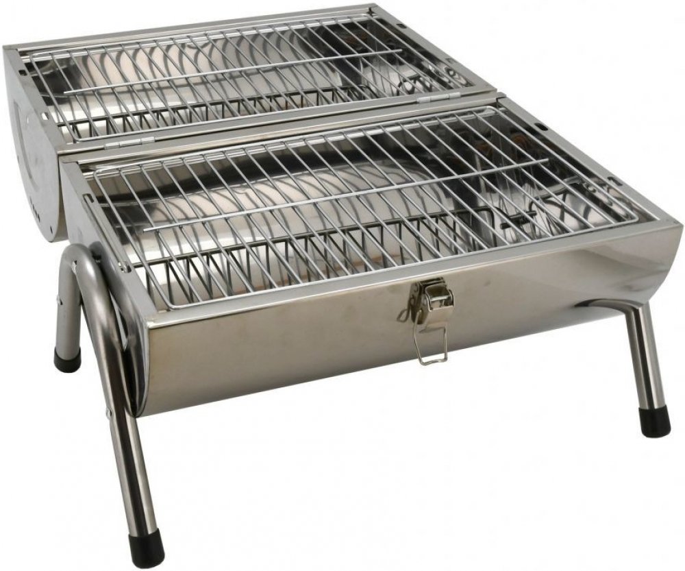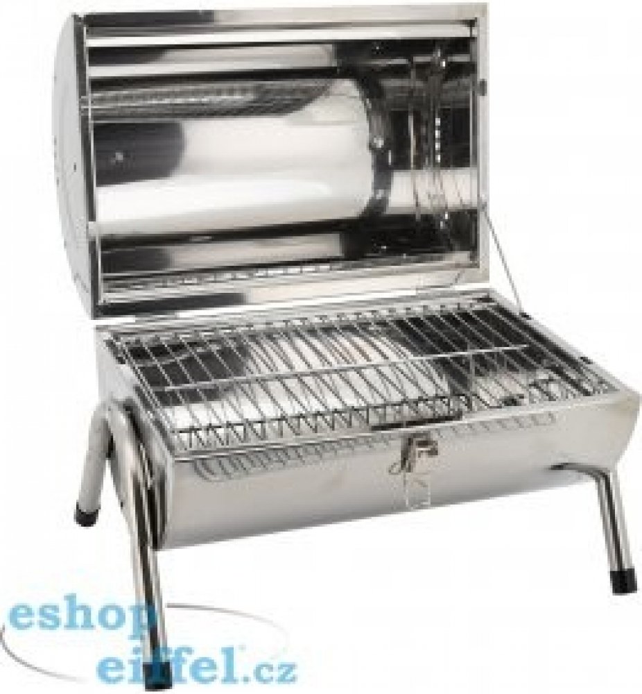 Konstrukce je vyrobena z kvalitního nerezového plechu s leštěným povrchem. Dřevěné madlo zajistí pohodlné přenášení zařízení. Stabilitu zajištují čtyři kovové nohy, přišroubované k tělu grilu. Víko grilu lze v otevřené pozici zajistit pomocí kovového háčku. Gril je uzpůsoben pro použití jako standardní gril, nebo jej lze dále rozložit a použít se dvěma grilovacími plochami. Pro samotnou tepelnou přípravu Vašich pochutin, je gril opatřen dvěma rošty z chromované oceli.Technické údaje:grilovací prostor: (2x) 36 x 24 cmgrilovací výška: 20 cmrozměr grilu: 42 x 38 x 26 (52) cmpojízdný: ano, 2 x kolečkapovrch: leštěná nerezová ocelrošt: chromovaná ocelhmotnost: 3,20 kgobjem: 25,97 dm3Obsah balení:1 x grilrozměry balení: 39 x 27 x 26 cm