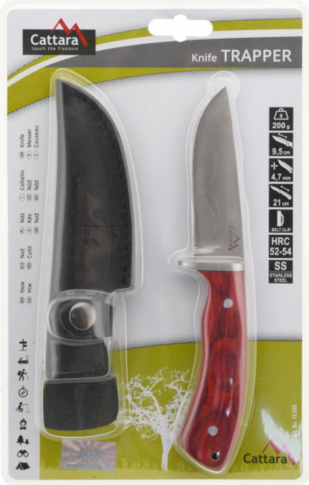 Popis produktu:Dýka je všestranný pomocník do každé situace a ne nadarmo se říká, že by ji měl mít u sebe každý muž. Vhodné do lesa, do campu, zkrátka pro každý outdoorový koníček.Čepel dýky je z nožířské oceli - 440C. Pyšní se vysokou tvrdostí a je velmi odolná do každého prostředí. Rukojeď je velmi kvalitně zpracována a spolu s dýkou je přibaleno pouzdro,které můžete zavěsit na pásek. Technické parametry:Délka dýky: 21 cmDélka čepele: 9,5 cmTloušťka čepele: 4,7 mmMateriál čepele: SS 440 CTvrdost čepele: HRC 52-54Hmotnost nože: 200 gPouzdro: ano, s uchycením na opasekObsah balení:1 x Dýka TRAPPER koženým pouzdrem
