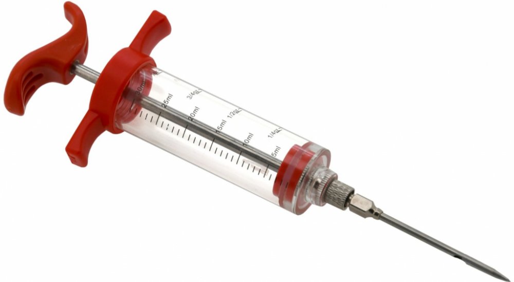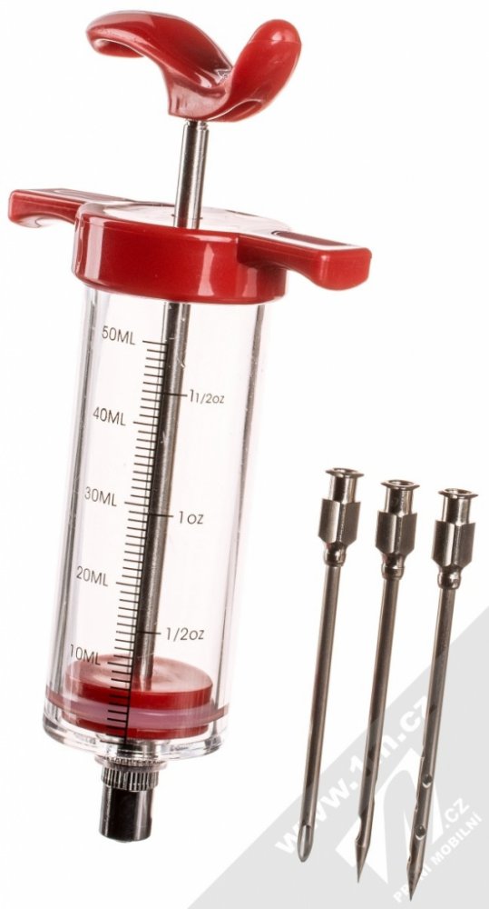 Dávkovací injekce na marinádu CATTARA Injekce na marinádu pro perfektní naložení masitých pokrmů. Dávkovací injekce na marinádu je skvělým nástrojem pro zlepšení chuti a textury masa. Injekce usnadní marinování masa nebo jeho naložení solným roztokem. Také umožní dochucení míst, kam se za jiných podmínek nedostane chuť koření, nálevu atp. Díky tomuto způsobu aplikace marinády se významně zkrátí čas pro naložení masa. Použití dávkovací injekce na marinádu je jednoduché. Injekční stříkačka se naplní marinádou nebo roztokem pomocí nálevky nebo přímo. Jehla se zapíchne do masa a jemným tlakem se vstřikuje do masa, pohybem ve směru vláken masa. Injekce je plně rozložitelná, čištění po umytí je velmi jednoduché. Parametry: objem: 30 ml materiál: plast a nerez ocel rozměry: 70 x 35 x 220 mm
