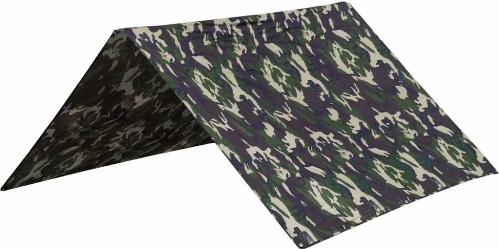 Lehká celta v lesní kamufláži s rozměry 2 x 3 m.