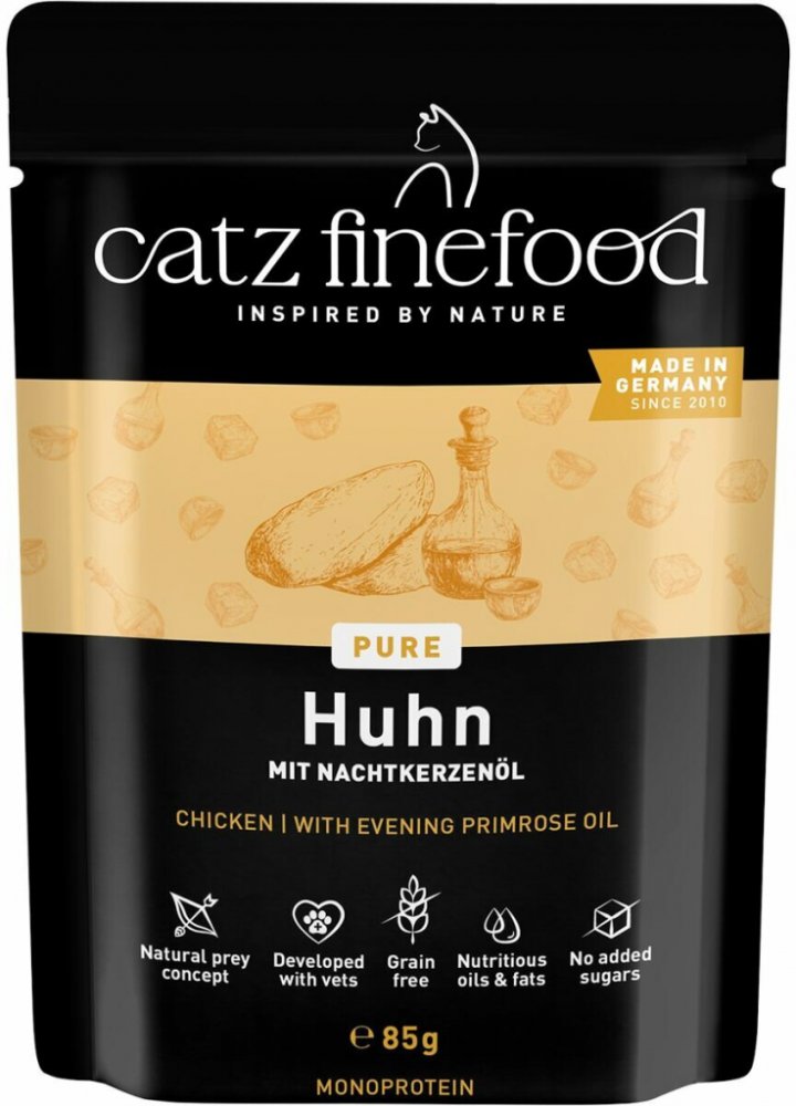 Catz finefood je zdravé a vyvážené krmivo pro kočky. Jednotlivé porce krmiva jsou připravené tak, aby odpovídali přirozené potravě koček – kořisti.