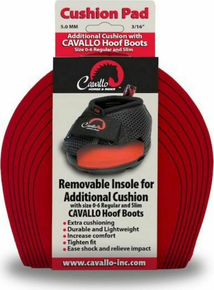 Vložky Cushion do bot Cavallo. Tloušťka vložky je 5 mm a 10 mm. Vyrobeny ze speciální mikrobuněčné pěny, která tlumí nárazy. Tyto vložky jsou vhodné zejména při rekonvalescenci koně, například během léčení kopyt, rehabilitaci či abscesech. Zajišťuje také lepší krevní oběh. Vložka je vhodná do bot Cavalla od velikosti 0 až 6 v provedení klasickém i úzkém. Všem vložkám do bot Cavallo lze upravit tva...