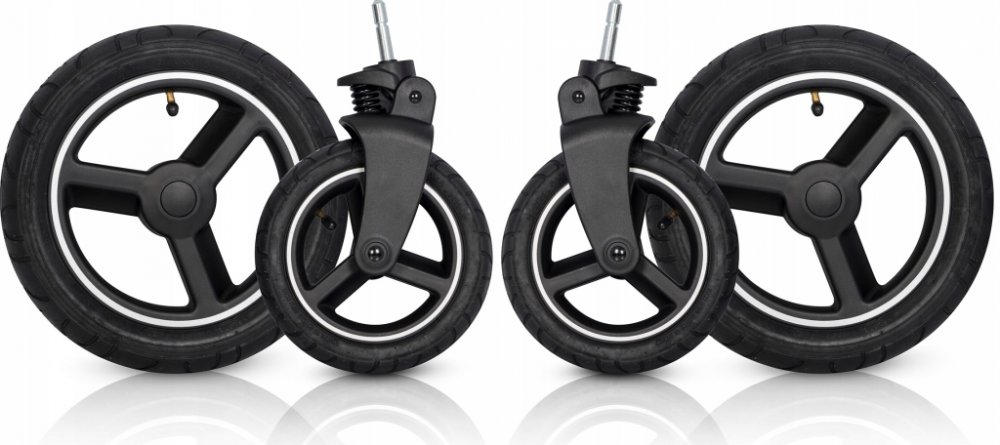 Sada nafukovacích kol pro kočárek pro dvojčata nebo děti od roku do roku výroby AVEC od značky CAVOEProč jsou nafukovací kola pro dvojčatový vozík Avec skvělou volbou?
