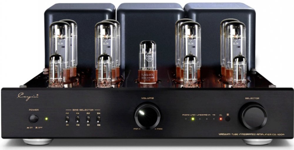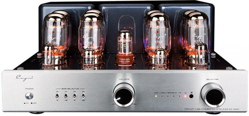 Je zkonstruován s měřičem zkreslení. Integrovaný zesilovač může také provozovat elektronky KT-88 nebo rodiny EL, přičemž mu nechybí stříbrné vnitřní vedení. Zesilovač CS-100A obsahuje elektronku 6SN7 sloužící k zesílení napětí, 12AU7EH pro fázovou inverzi/napěťové zesílení a 12BH7EH pro napěťové zesílení i stupně budiče, s výstupními elektronkami KT-88 nebo EL-34.