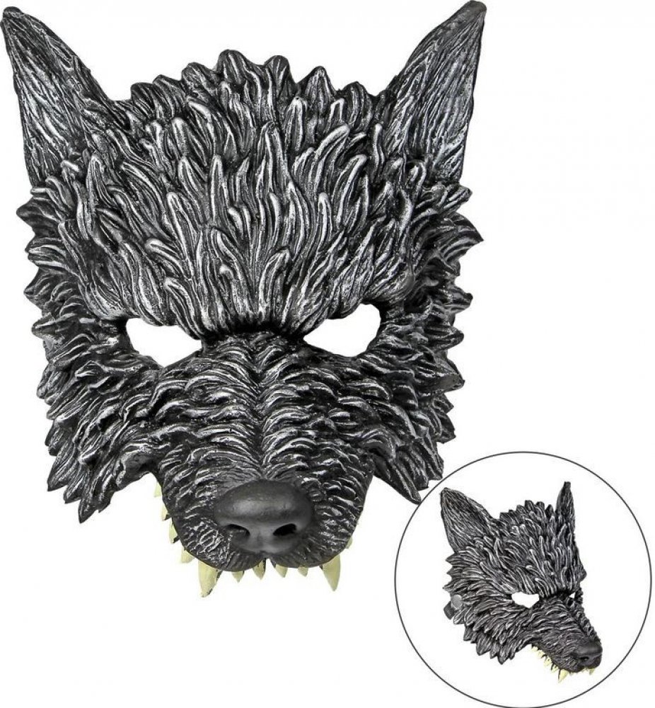Gumová polomaska pro vlka je z pevnějšího,ale měkkého materiálu, který netlačí. Je bez pusy, takže nebudete mít problém s jídlem, ani pitím. V zadní části je gumička s jejíž pomocí masku připevníte na obličej.