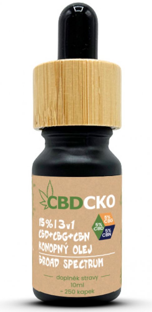 CBDčko konopný olej 3v1 5% CBD + 5% CBG + 5% CBN broad spectrum 15% 10 ml