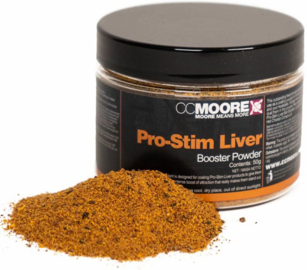 Díky tomuto efektu je k háčku přilákáno daleko více ryb, které mají chuť ke krmení. Tip k použití: Umístěte boilies do nádoby, naneste lehkou vrstvu Pro-Stim Liver Bait Booster nebo Hot Chorizo Compound, poté posypte vydatnou dávkou posilovacího prášku a protřepejte, dokud nebudou všechny návnady pokryty. Poté nechte zaschnout a v případě potřeby opakujte. Skladujte v chladu, suchu a mimo přímé sluneční světlo.