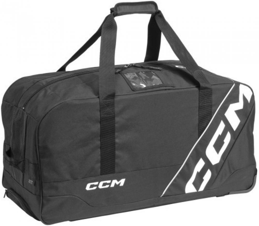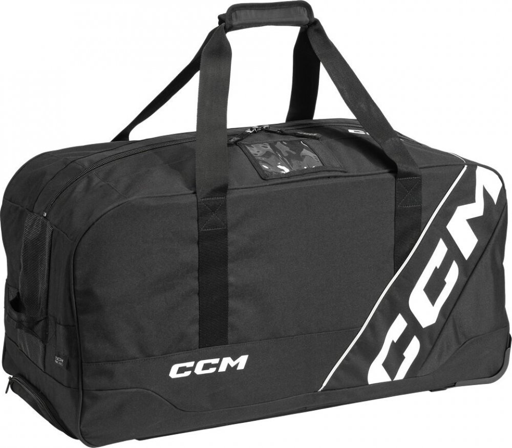 Hokejová taška na kolečkách CCM 520 ti usnadní cestu na zimák. Díky pevným kolečkům a teleskopickému madlu se výstroj převáží snadno a bez námahy. V případě nerovného terénu nebo schodů můžeš využít i ramenní popruhy. Klíčové vlastnosti Kolečka + madlo: Pro snadný a pohodlný převoz výstroje Ramenní popruhy: Pokud terén nepřeje, tašku vezmeš jednoduše na rameno Ventilační panely: Výstroj lépe dýchá a nezatuchne ani při delším skladování Prostorný