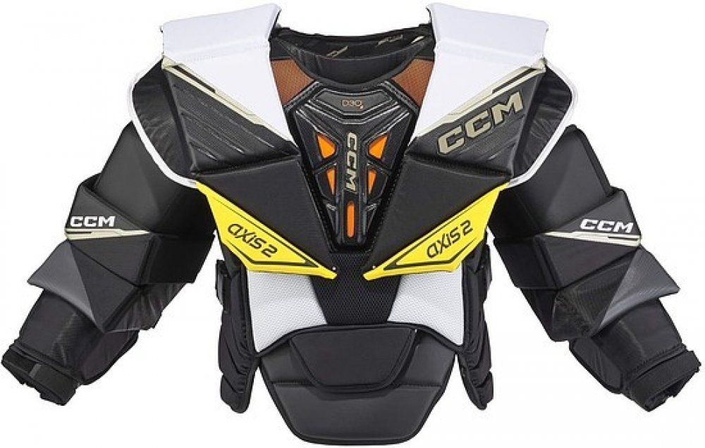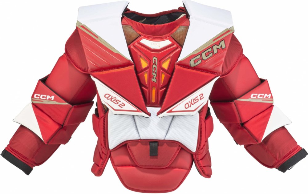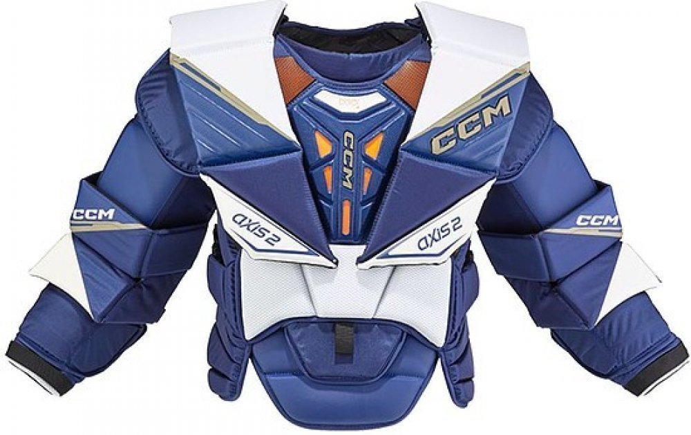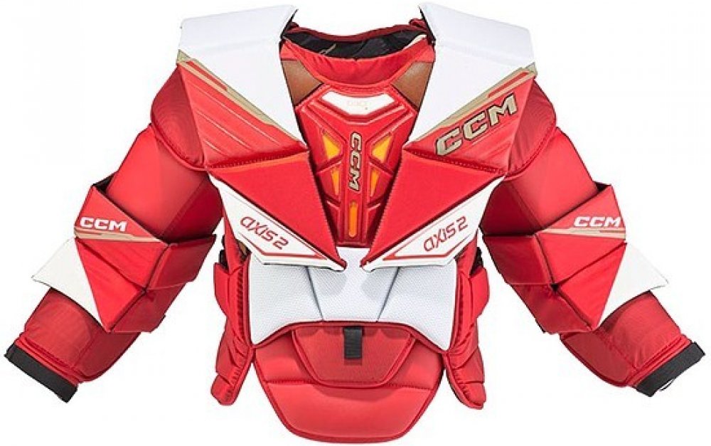 Profesionální brankářská vesta CCM AXIS 2 SENIOR je nejvyšším modelem brankařské vesty z dílny značky CCM. Absolutní TOP MODEL, kde je zaručena maximální ochrana a komfort při zachování nízké hmotnosti a perfektní pohyblivosti. O maximální možnou ochranu proti nárazu v oblasti hrudní a klíční kosti se postará patentovaná pěna D3O®, která umí reagovat na intenzitu nárazu a změnit svoji hustotu a tím i tvrdost v závislosti na síle úderu. Výtečnou ochranu hrudníku zajistí štít VENT-TECH s polstrovaným jádrem a kvalitní pěnou D30. Nejenže štít VENT-TECH poskytne dokonalou ochranu, ale i prodyšnost, díky které se budete cítit skvěle. Větší pohyblivost : Reaktivní konstrukce vyrobená technologií ADPTFLEX zajistí v oblasti trupu dokonalé krytí a pohyblivost. Rozšířené krytí : Před nepříjemným a bolestivým nárazem žeber vás ochrání chránič vyrobený ze segmentované lisované pěny chytré pěny D3O® s rozšířeným krytím. Ochrana a zvýšená mobilita: O výbornou ochranu ramenního výlisku a bicepsu se postará lisovaná HD pěna. Lepší pohyblivost zajišťuje chránič předloktí, který má zaoblený tvar a je vyrobený z HD pěny. Chránič si snadno přizpůsobíte: Nezávisle nastavitelný chránič loktů vám jednoznačně umožní lepší pohyblivost, což jistě oceníte. Komfort po celou dobu: Perforovaná polstrovaná vložka VENT-TECH vás pomůže udržet v suchu, neboť výborně odvádí vlhkost a vy se tak od začátku až do konce utkání budete cítit komfortně. Přizpůsobitelný střih: Ramenní křídla se upínají pomocí Velcro systému, mají hranatý tvar a jsou plně segmentovaná pro ještě lepší pokrytí.