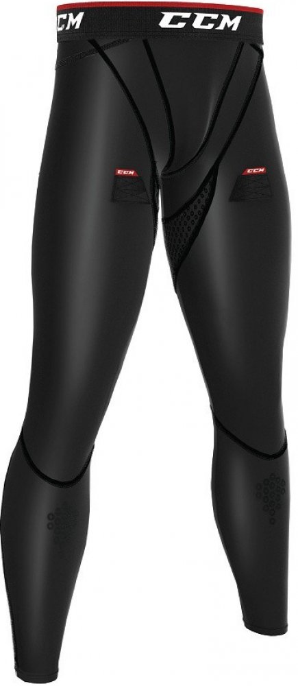 Dlouhé kompresní kalhoty se suspenzorem CCM Jock short. Kraťasy jsou vyrobeny z antibakteriálního materiálu, který nezadržuje pot a zápach. Dlouhé kompresní kalhoty se suspenzorem CCM Jock short. Kraťasy jsou vyrobeny z antibakteriálního materiálu, který nezadržuje pot a zápach. Díky hornímu elastickému pásu skvěle drží na těle. Na přední i zadní straně nohavic je suchý zip pro jednoduché přidělání stulpen. Suspenzor s měkou vložkou a tvrdou skořepinou pro maximální ochranu. SLOŽENÍ: 85% polyester 15% Spandex