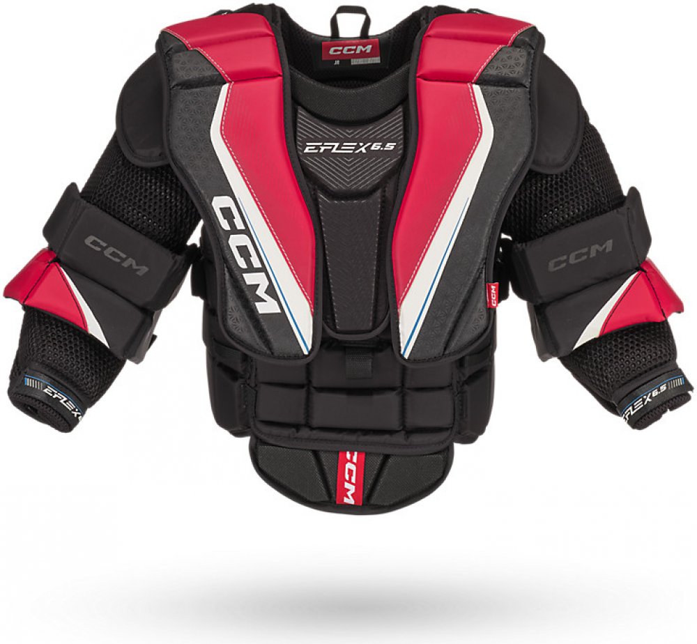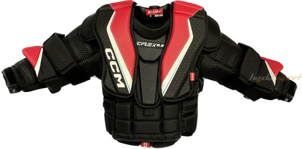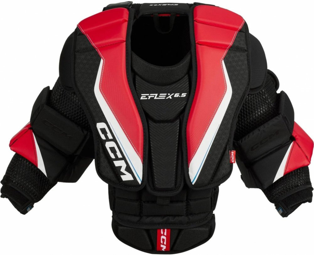 Špičková řada brankářského vybavení CCM EXTREME FLEX. Dětská brankářská vesta CCM EFLEX 6.5 s inovovanou konstrukcí a kompletně novým designem. Vesta dovoluje brankáři maximální volnost pohybu při zachování špičkové úrovně ochrany nejen díky svému provedení, ale i díky bohatému využití nejmodernějších ochranných pěnových materiálů, které skvěle eliminují následky i těch nejprudších střel.