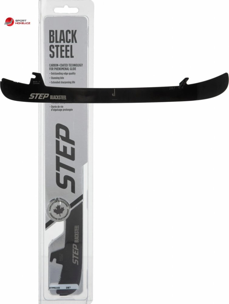 - Nůž do bruslí CCM od kanadského výrobce firmy Step Steel. Tento nůž se vyznačuje velmi vysokou kvalitou použité oceli, čímž je zaručena dlouhá životnost ostří. Další nespornou výhodou nože je jeho vyšší profil o cca 35% neboli 4mm po celé jeho délce, takže je zaručena vyšší pevnost a životnost nože. Díky vyššímu profilu ( více materiálu k broušení ) je tento nůž také výrazně ekonomicky výhodnější, než originální nože. Tento runner lze použít na obě brusle, kromě nápisu není nijak jinak odlišný levý od pravého nože. Potřebnou velikost nože najdete uvedenu na plastovém skeletu, který drží nůž a to na patě