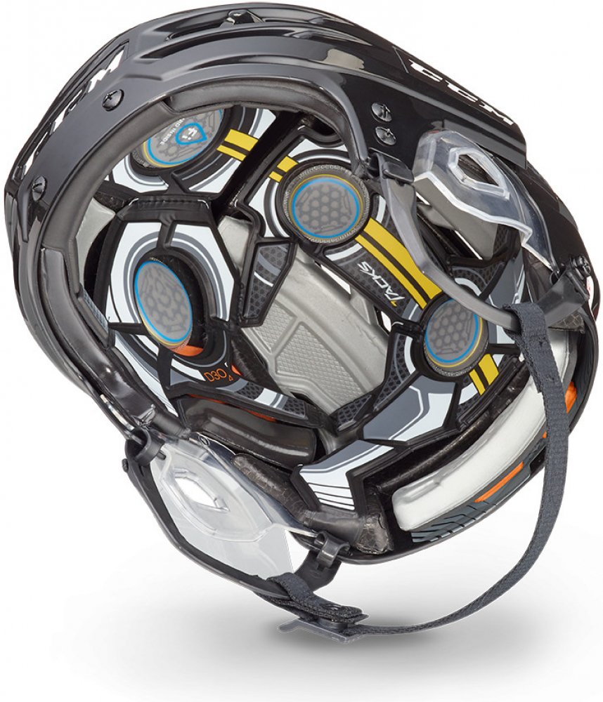 Helma, která patří do rodiny Tacks, tudíž padne defucto na každou hlavu. S jediným rozdílem - do ochrany je to top třída na trhu. D3O paměťová pěna, u nejvyších tříd výstroje CCM, je standardem. Nicméně zde máme nové ochrané prvky, tzv. Fluid polštářky. Volně přeloženo, jako plavající, jsou na nejdůležitějších bodech a dodávají helmě top ochranu, ale také i komfort. Po celé helmě je samozřejmě gel IQ Shion, který je tu zejména pro komfort. Na zatýlku je stabilizační vložka, aby nám helma při nárazu nespadla. Novinkou je nastavená velikosti, kdy stačí vyklapnout zámeček a můžete si s helmou velikostně pohrát.