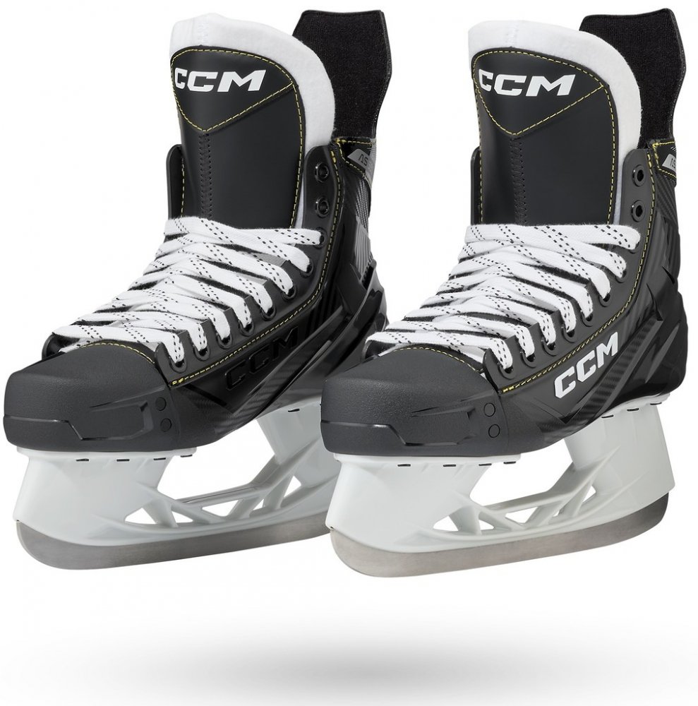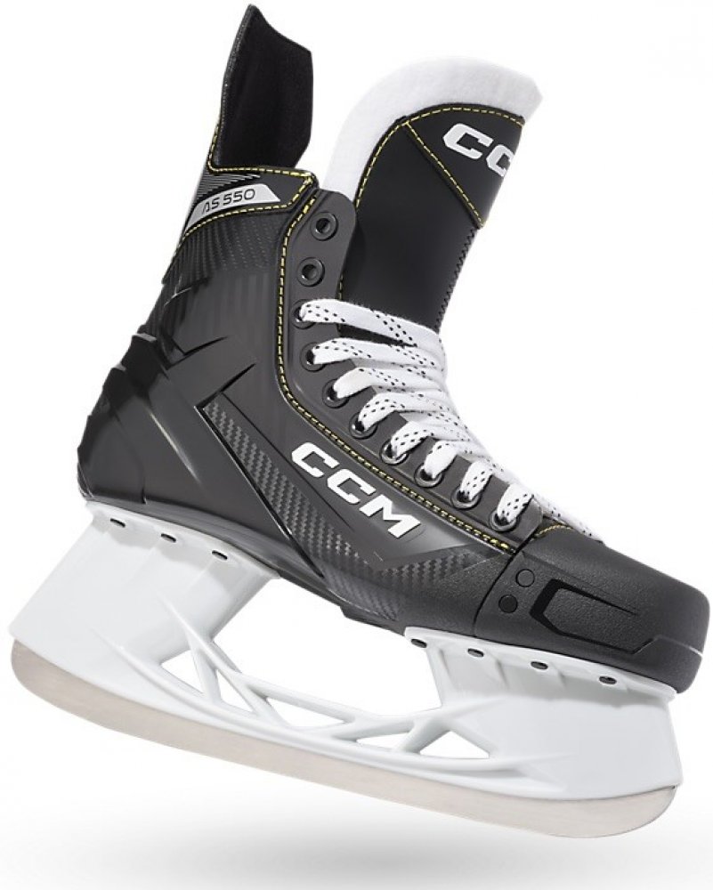 Brusle CCM Tacks AS 550 - jsou základním modelem pro začínající hobby hokejisty, model bruslí je novinkou pro sezónu 2022/23. Brusle CCM Tacks AS 550 - jsou základním modelem pro začínající hobby hokejisty, model bruslí je novinkou pro sezónu 2022/23. Popis: Pohodlné i odolné brusle a jsou tak ideální volbou pro hobby hráče, kteří s hokejem teprve začínají. Použitá vstřikovaná síťovaná technologie, zaručí odolnou botu s potřebnou konstrukční tuhostí. Stélka je z česaného mikrovlákna, pohodlná a vysoce odolná proti oděru, opotřebení a zajistí velký komfort. Brusle mají filcový jazyk o tloušťce 5 mm pro pohodí a ochranu nártu. Vstřikovaná podešev napomáhá přenosu energie při každém záběru. Nože CCM SpeedBlade Pro jsou nerezové se zvednutým holderem na patě pro větší otočný úhel. Nože mají větší kluznou plochu pro větší stabilitu začínajícího hráče. Holder je s nevyměnitelným nožem CCM Speedblade. Brusle nejsou tepelně tvarovatelné. Kotva tabulky velikostí