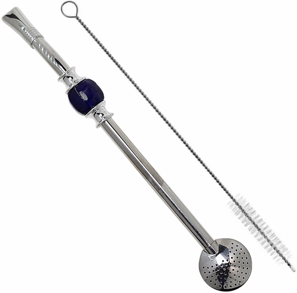 Bombilla Bomba fialová (21 cm) + štěteček a krabičkaEstetický model zdobený drážkami na náustku a dvěma chladícími kroužky, mezi které je vložen fialový kámen. Má odnímatelné sítko (filtr), díky čemuž se snadno udržuje čistá. Čisticí štěteček je součástí balení. Omyjte vodou a saponátem a poté použijte štěteček.Tento typ bombilly se hodí pro středně velké a větší kalabasy.Délka: 21 cm