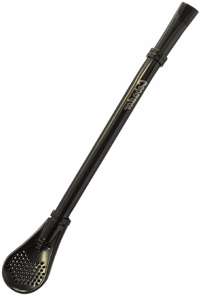 Velmi pečlivě vyrobená bombilla z nerezové oceli, mírně zakřivená. Má filtrační prvek ve formě sítka. Takový jednoduchý design umožňuje dobré filtrování a bezproblémové pití. Barva černá.