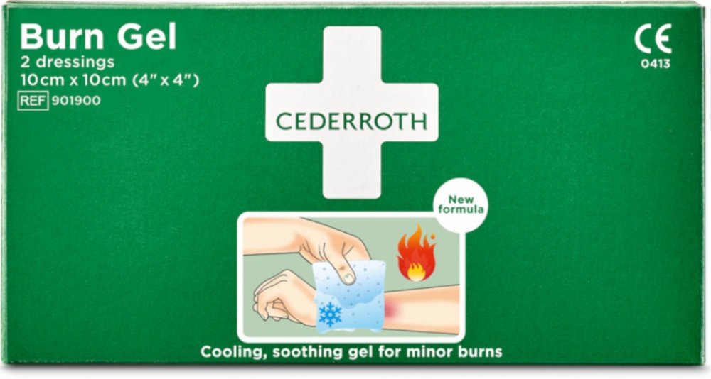 Obklad s gelem na popáleniny Cederroth napuštěný hydrogelem pro první pomoc a okamžité ošetření drobných opaření a popálenin. Gel rychle ochlazuje a uklidňuje zranění, zabraňuje dalšímu poškození tkáně a nabízí rychlé a pokračující úlevu od bolesti.Obvazy jsou jednotlivě baleny v uzavřených, sterilizovaných sáčcích, které lze snadno roztrhnout. Obklad s gelem na popáleniny Cederroth je součástí lékárničky na popáleniny CD 51011013.Obklad s gelem na popáleniny Cederroth má označení CE.Skladování v suchu při pokojové teplotě. Pro maximální ochranu uchovávejte v původním balení až do použití.