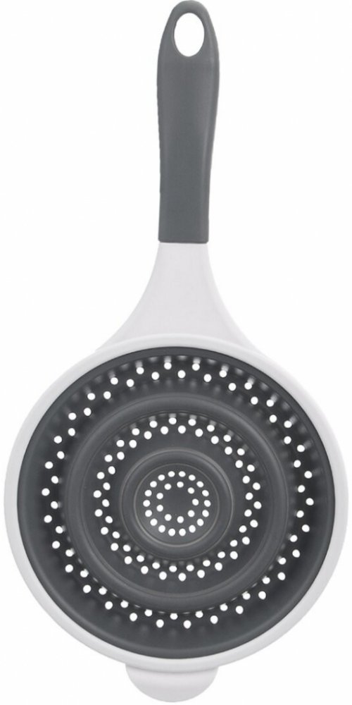 Skládací silikonový cedník využijete pro cezení nejrůznějších potravin v kuchyni. Jeho výhodou je tvarovatelná cedicí část – při ukládání ji zamáčknete a nezabere Vám mnoho místa. Skvělý do karavanů, kempů, na chatu. Materiál: silikon, plast PP. Max. teplota 100 °C. Možnost zavěšení. Rozměry: d. s rukojetí 41 cm, pr. 20 cm. Vhodný do myčky na nádobí.
